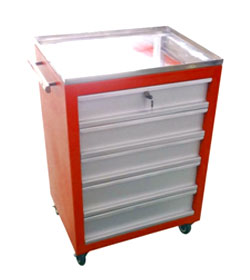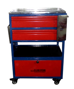 MECHANIC TOOLS TROLLEY (OLS/4W-050-08) This tool trolley is designed to store general tools . S.S top. 2 Drawers to secure the tolls & S.S flap attached to lock the drwaers. Job card holder attached.
