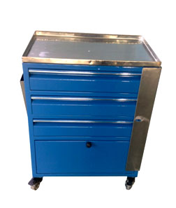 SINGLE CABINET MULTI DRAWERS TOOLS TROLLEY (OLS/4W-050-08) S.S top. 3 Drawers & single cabinet for keeping tools & other accessories. Castor wheels for easy movement on floor.