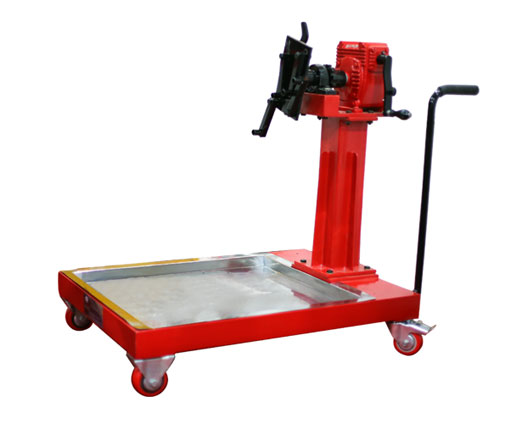 ENGINE SERVICE FIXTURE (HEAVY DUTY) (OLS/4W-015-05) Unique design for dismantling/assembly of engine. Capacity - 0.5 Ton. Gear type locking systems. Stainless stell tray for keeping parts & castor wheels easy movement.